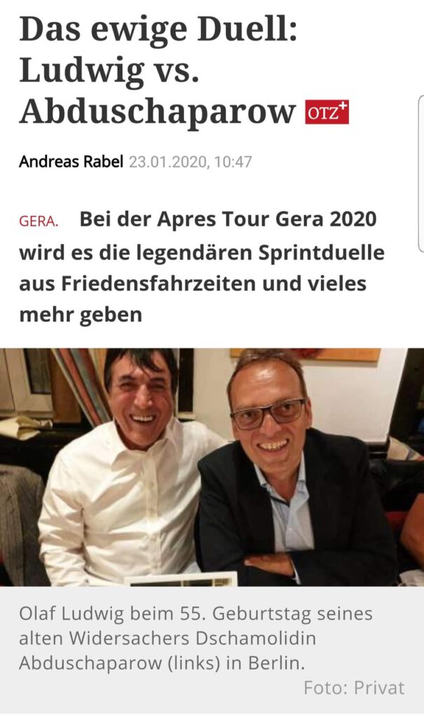 Alte Konkurrenten treffen sich wieder: Olaf Ludwig und Dschamolidin Abduschaparow
